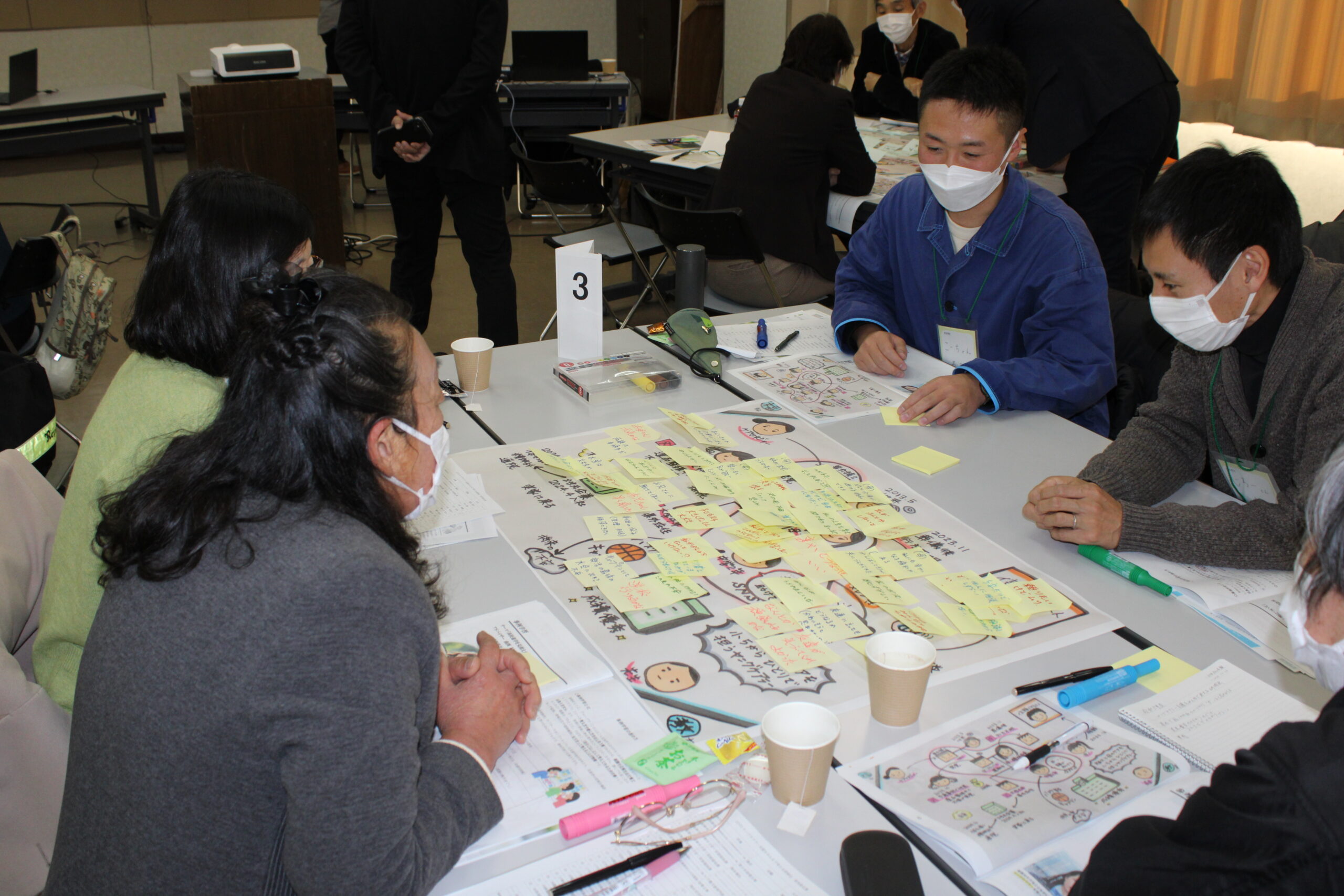 今回は、なりきりグループワークを3回に分けてやりました。その都度、グループで出た意見を共有し、アドバイザーの曲渕紀子さんにコメントをいただきました。皆さんのなりきり度が素晴らしく、時間が足りないほどでした。本人や家族を含む世帯をチームで支えていくことが大切、支援者の声掛けや立ち位置を見直すきっかけになったというご意見もありました。