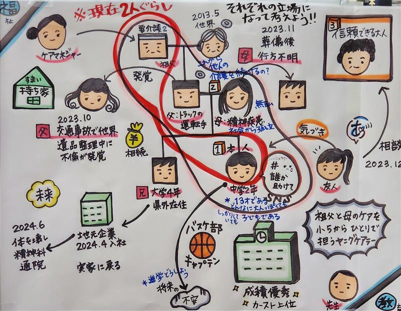 ①考え方や感じ方を出し合う:当事者や家族になりきって”自分だったら”を話し合います