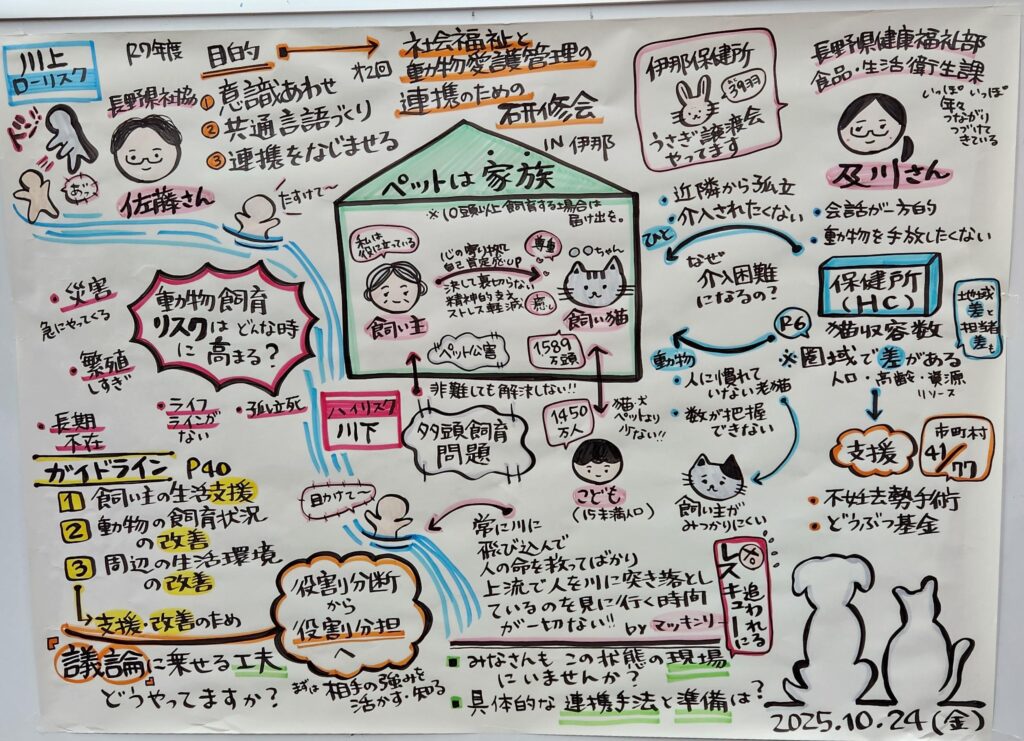 第シーズン2 南部エリア 2025年10月27日人と動物のふくし研究会お知らせ 2025.10.24 人と動物のふくしを考えるワンウェルフェアプロジェクト「社会福祉と動物愛護管理の連携のための研修会第2回workshop」南部エリアが伊那市で開催されました。 前の記事第8回フューチャー・デザイン2025次の記事12月4日 ヤングケアラーのことをみんなで学ぶ研修会